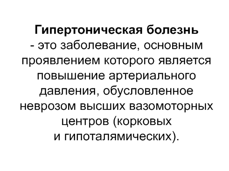 Слайд 10 Гипертоническая болезнь (morbus hypertonicus) – заболевание ведущим синдромом