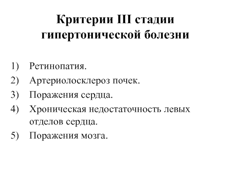 Слайд 23Критерии III стадии гипертонической болезни