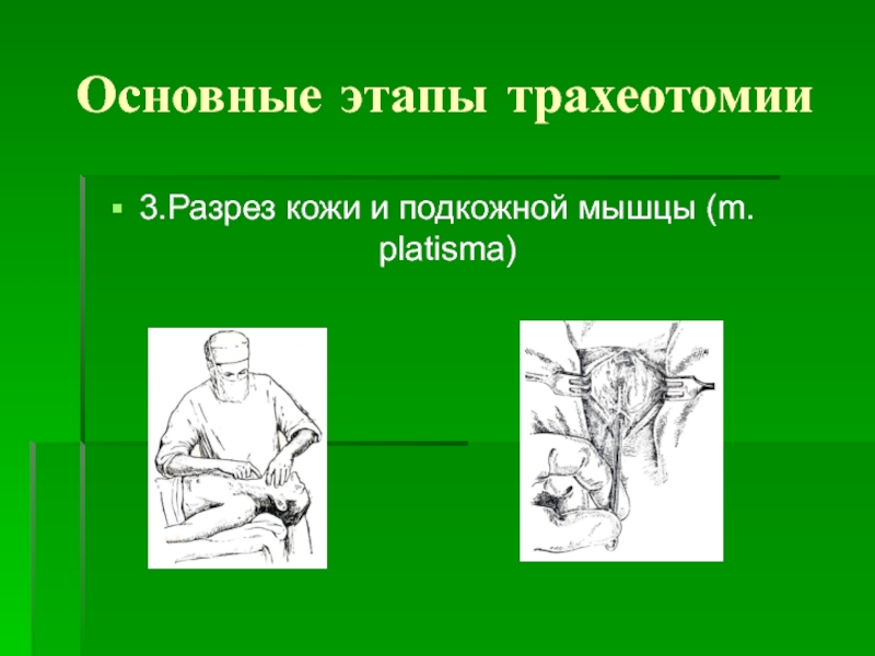 Основные этапы трахеотомии3.Разрез кожи и подкожной мышцы (m. platisma)