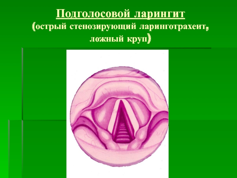 Слайд 18Подголосовой ларингит (острый стенозирующий ларинготрахеит, ложный круп)