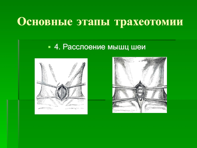 Основные этапы трахеотомии4. Расслоение мышц шеи