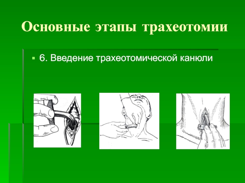 Основные этапы трахеотомии6. Введение трахеотомической канюли