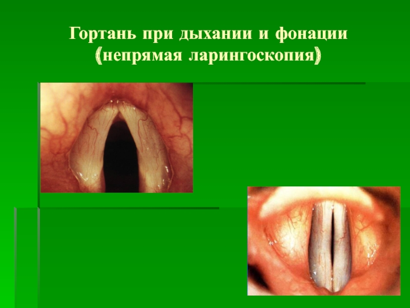 Слайд 10Гортань при дыхании и фонации (непрямая ларингоскопия)