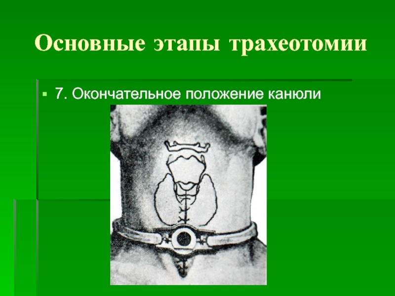 Основные этапы трахеотомии7. Окончательное положение канюли