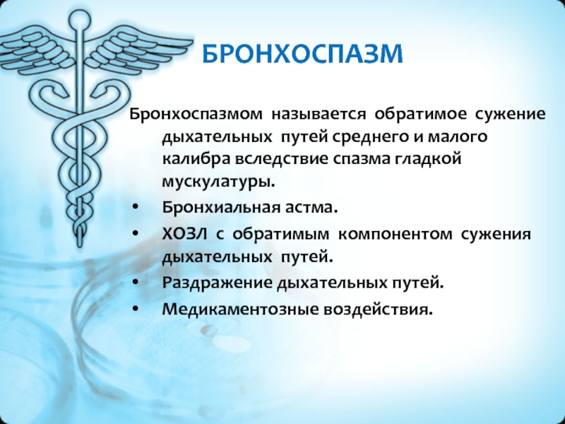 Бронхоспазмом называется обратимое сужение дыхательных путей среднего и малого
