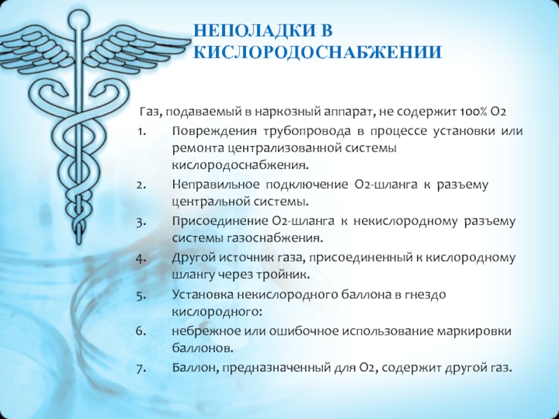 Слайд 20НЕПОЛАДКИ В КИСЛОРОДОСНАБЖЕНИИ