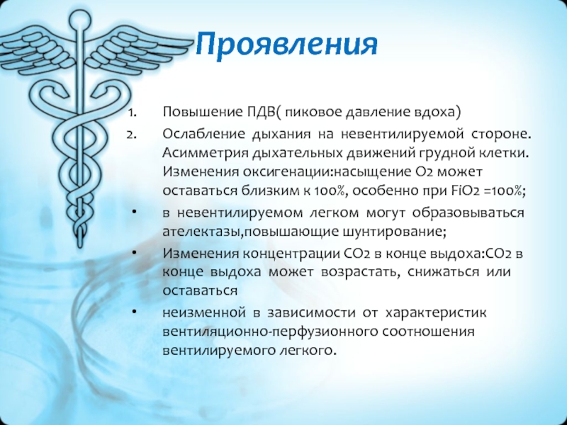 Ослабление дыхания на невентилируемой стороне. Асимметрия