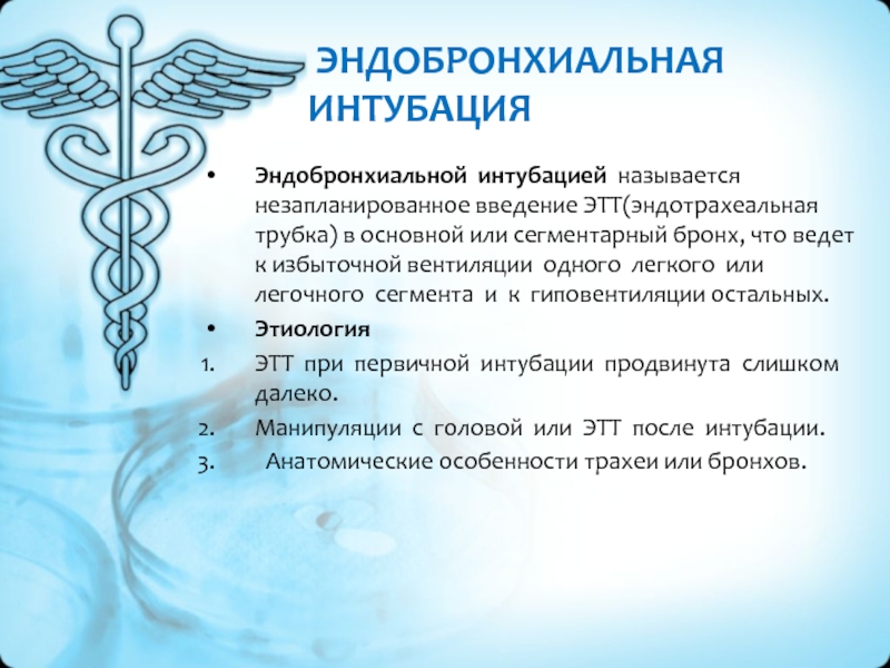 Эндобронхиальной интубацией называется незапланированное введение ЭТТ(эндотрахеальная трубка) в