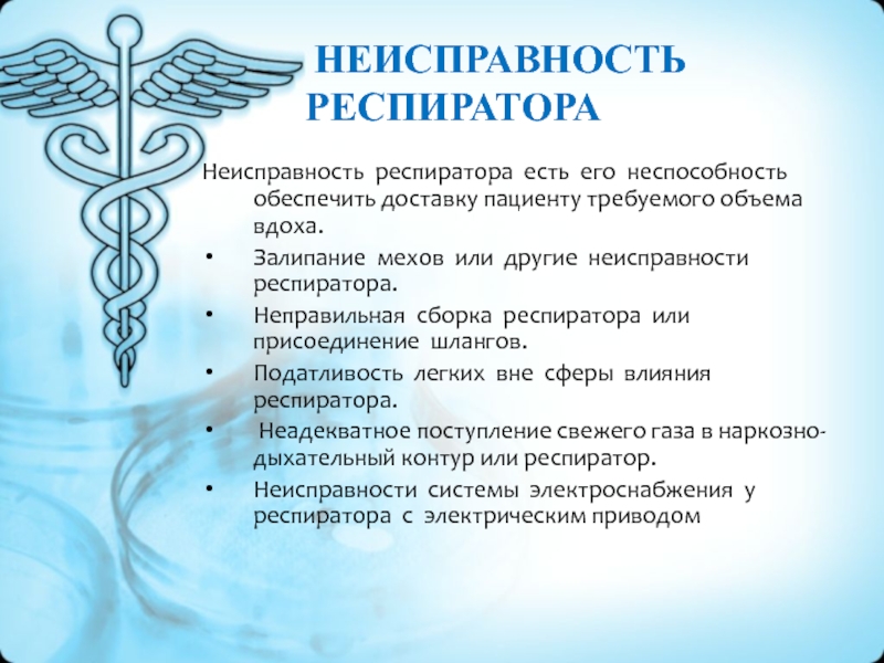 Неисправность респиратора есть его неспособность обеспечить доставку пациенту