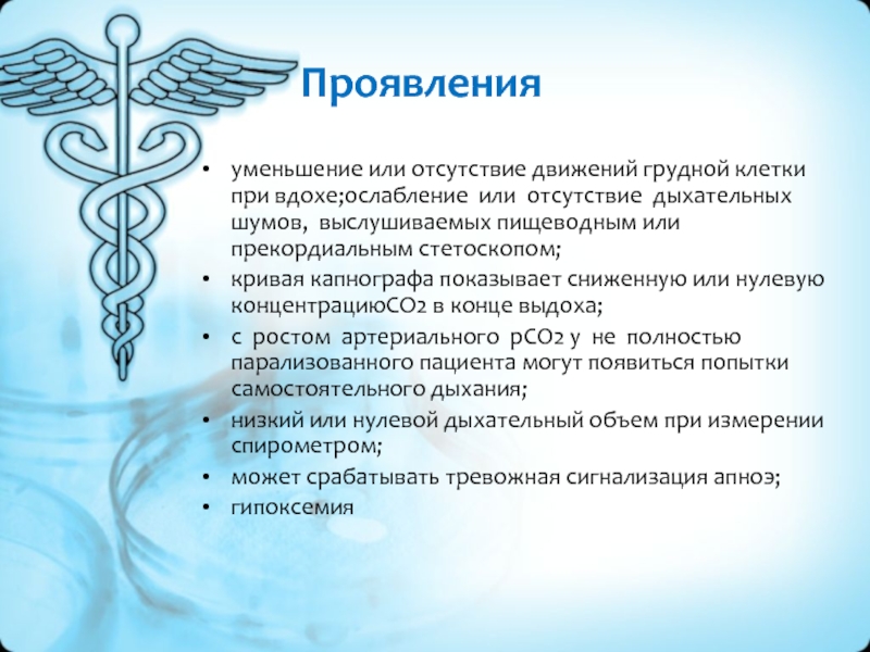 с ростом артериального рСО2 у не полностью парализованного пациента могут появиться попытки самостоятельного дыхания;