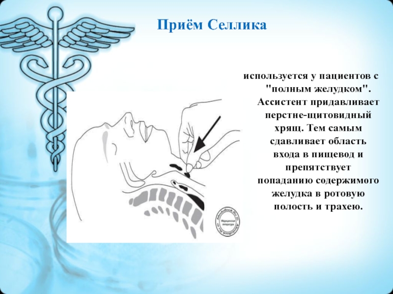 используется у пациентов с "полным желудком". Ассистент придавливает перстне-щитовидный