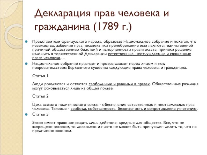 Слайд 7Декларация прав человека и гражданина (1789 г.)