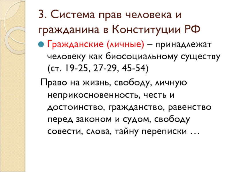 Слайд 103. Система прав человека и гражданина в Конституции РФ