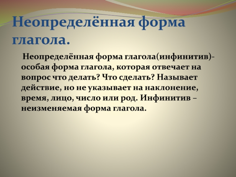 Неопределённая форма глагола(инфинитив)- особая форма глагола,