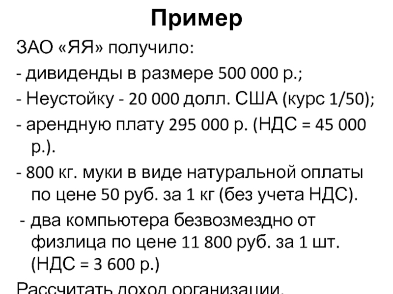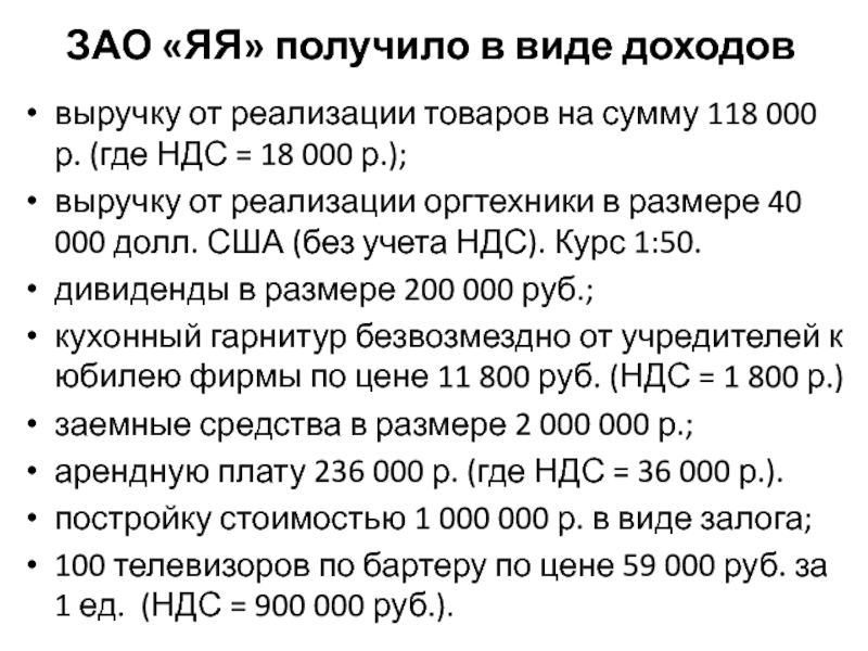 выручку от реализации оргтехники в размере 40 000 долларов США (без учета НДС). Курс 1:50.