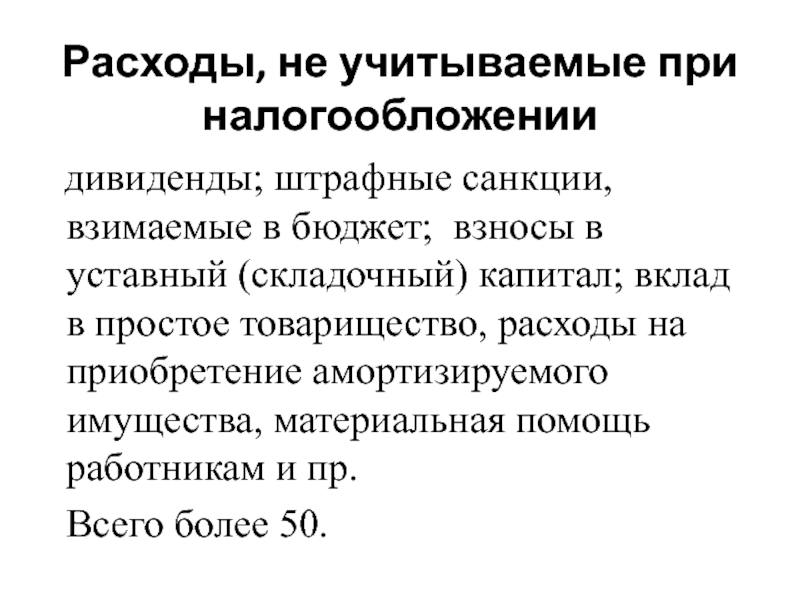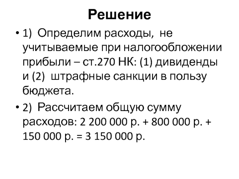 5) Определим расходы, не учитываемые при налогообложении прибыли – ст.270 НК: (1) дивиденды и (2) штрафные санкции.