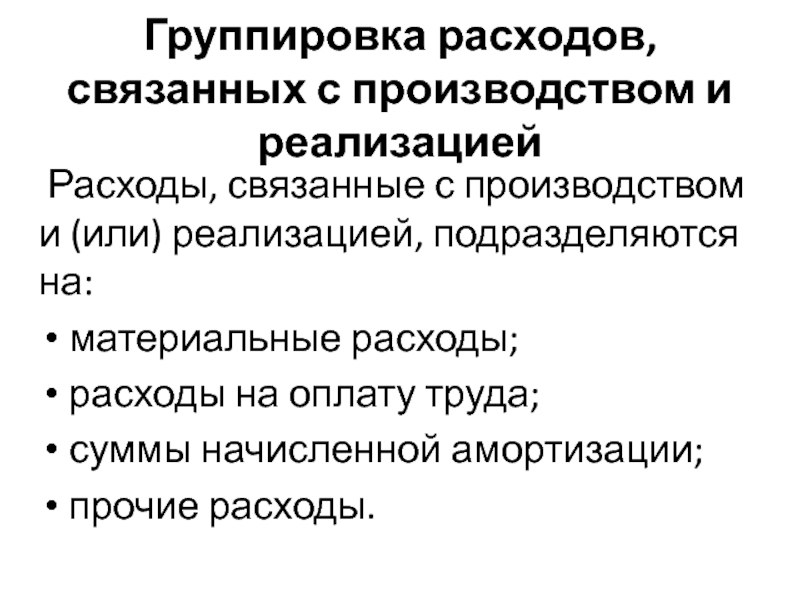 Слайд 57Группировка расходов, связанных с производством и реализацией