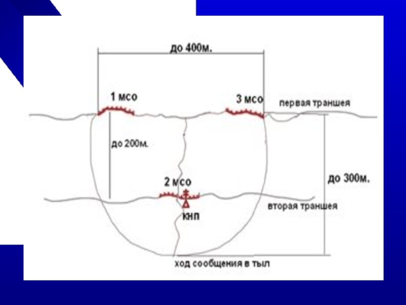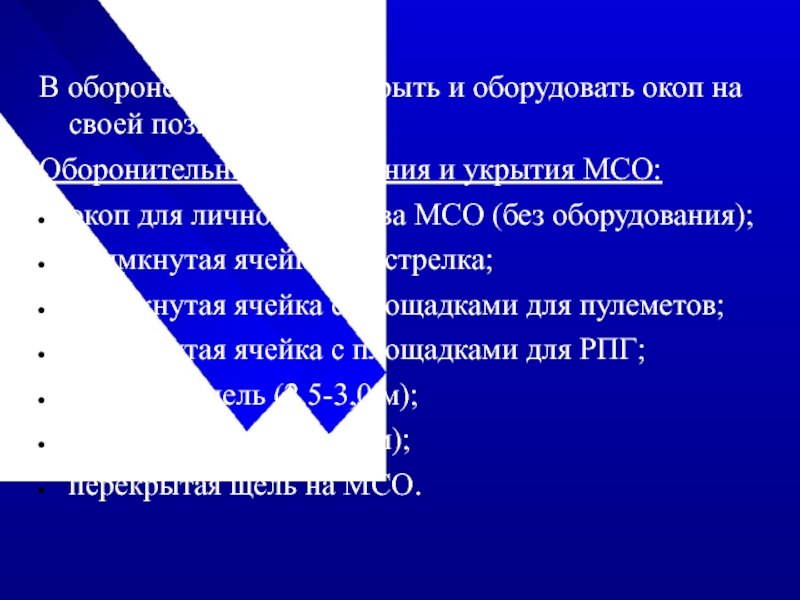 Слайд 41В обороне МО может открыть и оборудовать окоп на своей