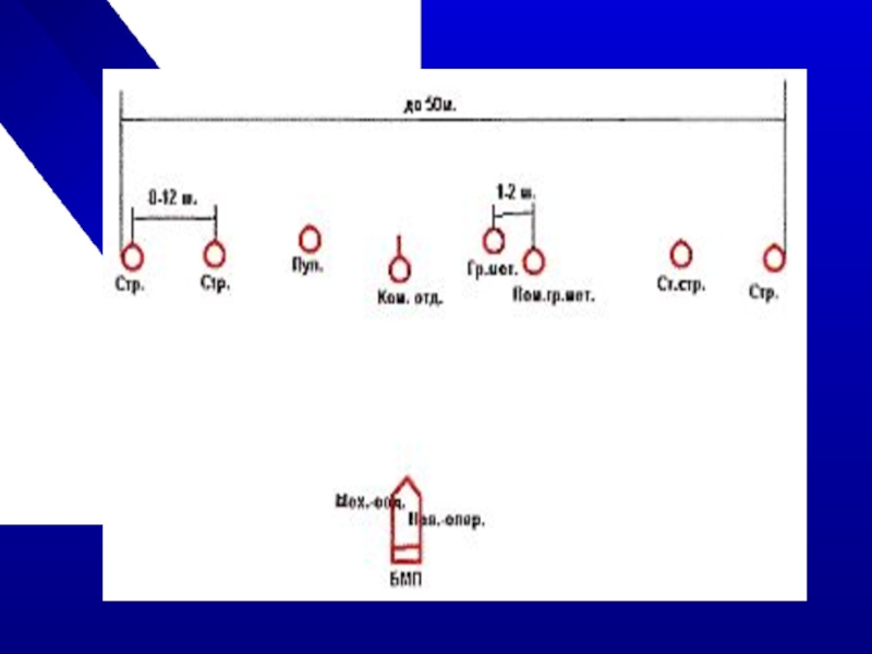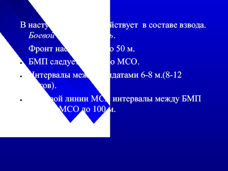 Слайд 39В наступлении МСО действует в составе взвода. Боевой порядок –