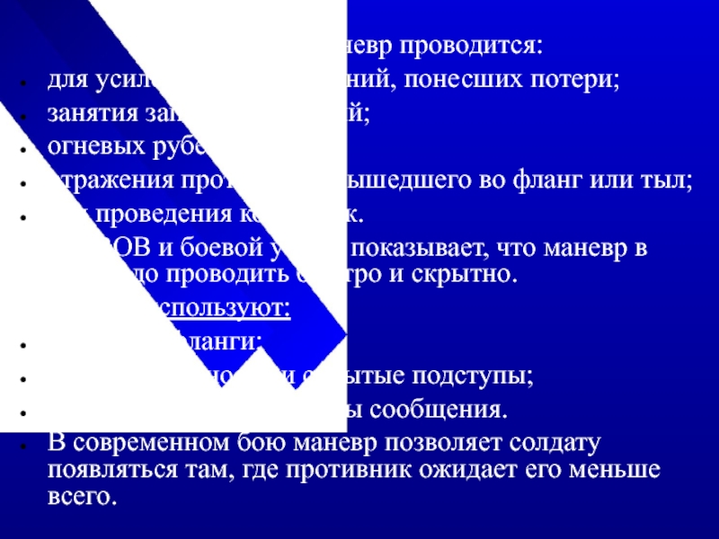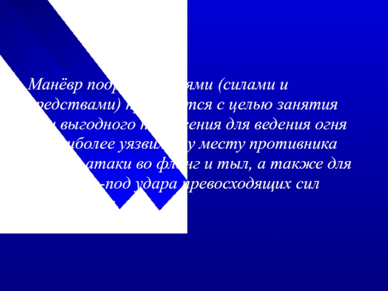 Слайд 30Манёвр подразделениями (силами и средствами) проводится с целью занятия ими