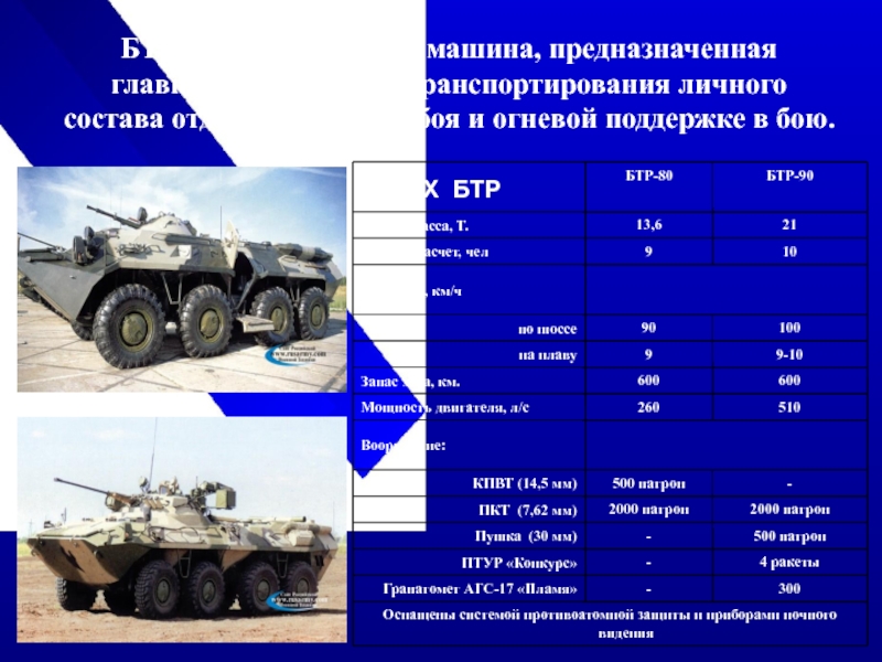 Слайд 12БТР - боевая колесная машина, предназначенная главным образом для транспортирования