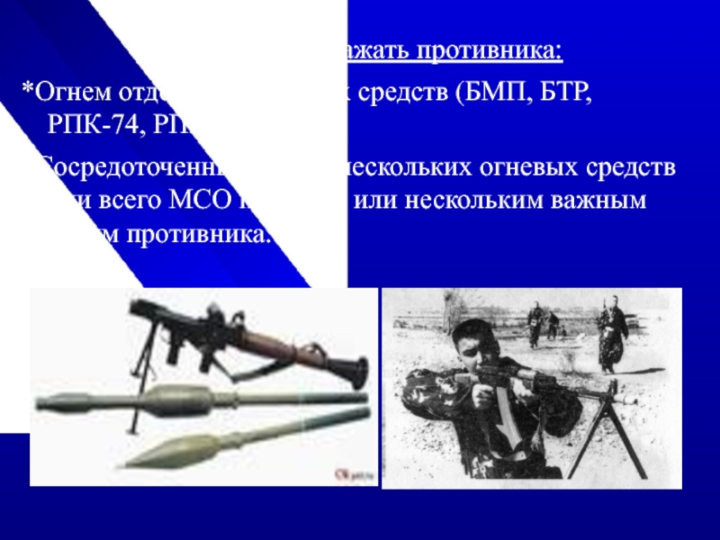 *Огнем отдельных огневых средств (БМП, БТР, РПК-74,