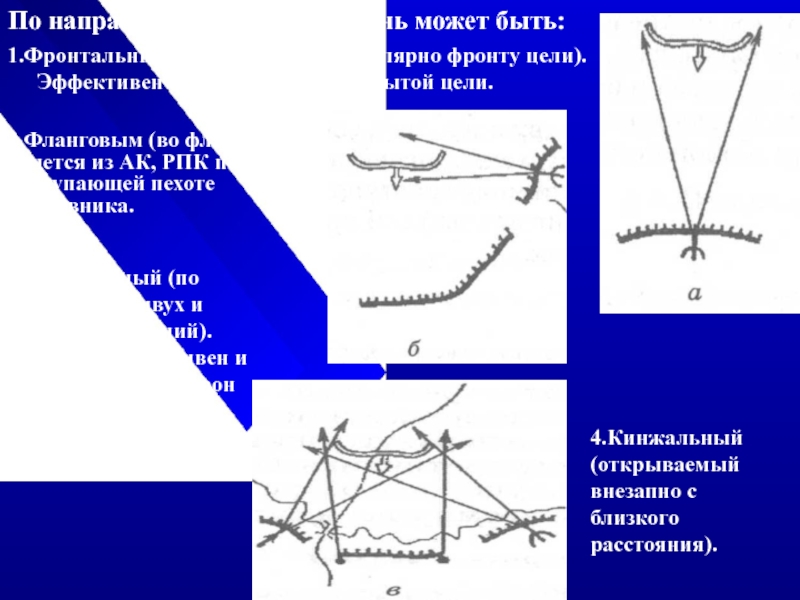 1.Фронтальный (ведется перпендикулярно фронту цели).