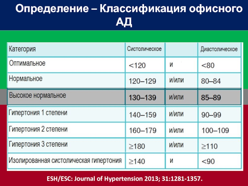 ESH/ESC: J Hypertens 2013; 31:1281-357.