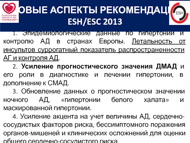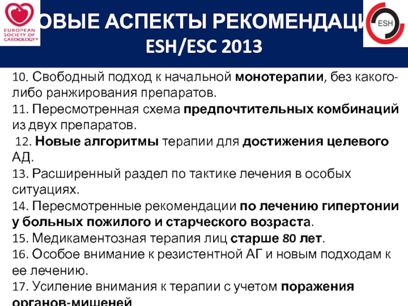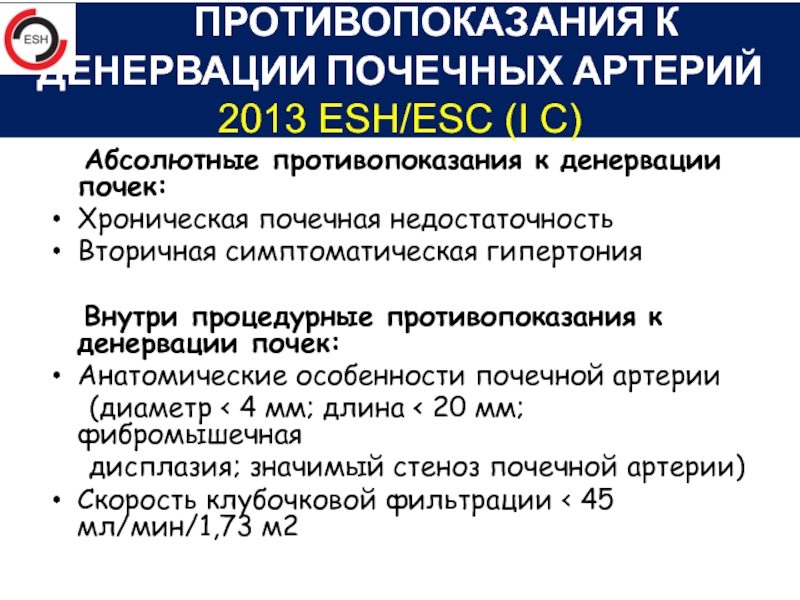 ПРОТИВОПОКАЗАНИЯ К ДЕНЕРВАЦИИ ПОЧЕЧНЫХ АРТЕРИЙ 2013 ESH/ESC (I C)