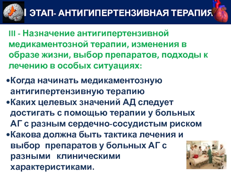 Какова должна быть тактика лечения и выбор препаратов у больных АГ с разными клиническими характеристиками.