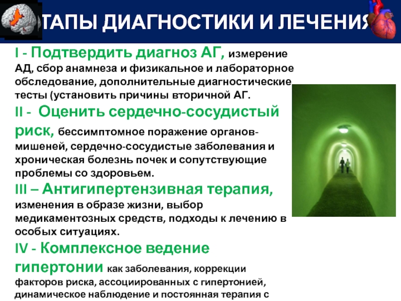 ПОРАЖЕНИЕ ОРГАНА: Церебральное, кардиальное, почечное, сосудистое обязательно при резистентной и осложненной АГ.