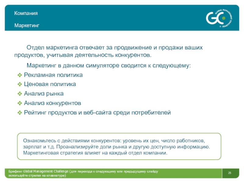 Вашей команде предстоит управлять компанией в условиях конкурентной среды.