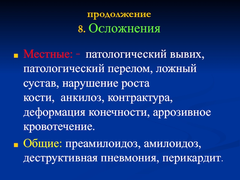 Местные: патологический вывих, патологический перелом, ложный сустав,