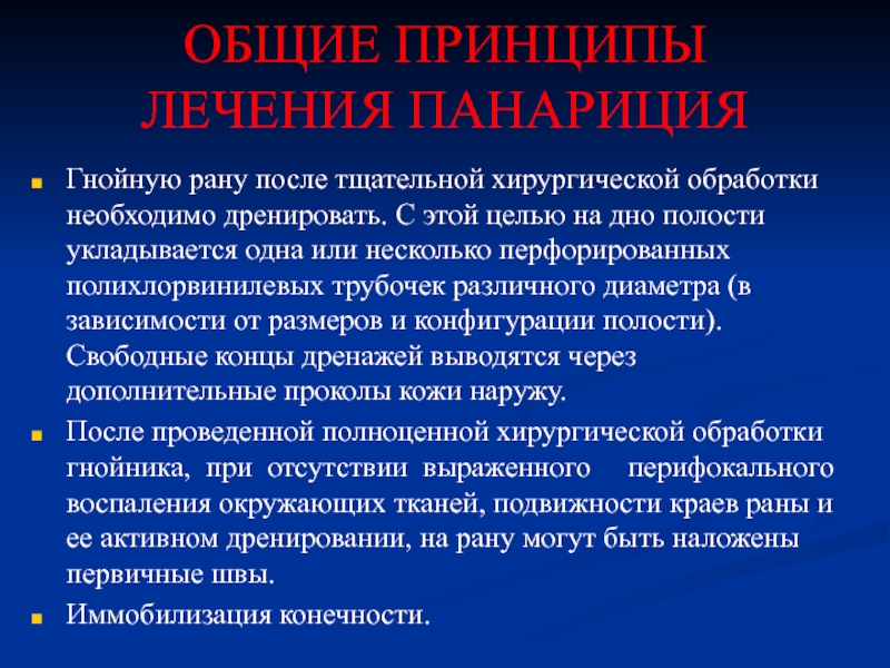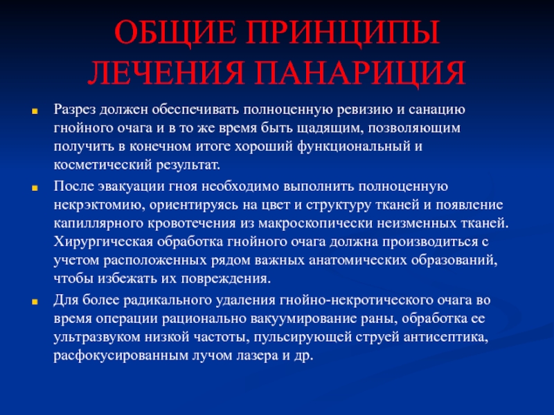 Слайд 14ОБЩИЕ ПРИНЦИПЫ ЛЕЧЕНИЯ ПАНАРИЦИЯ