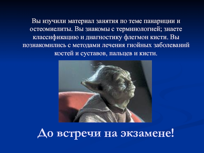 флегмон кисти. Вы познакомились с методами лечения гнойных заболеваний костей и суставов, пальцев и кисти.