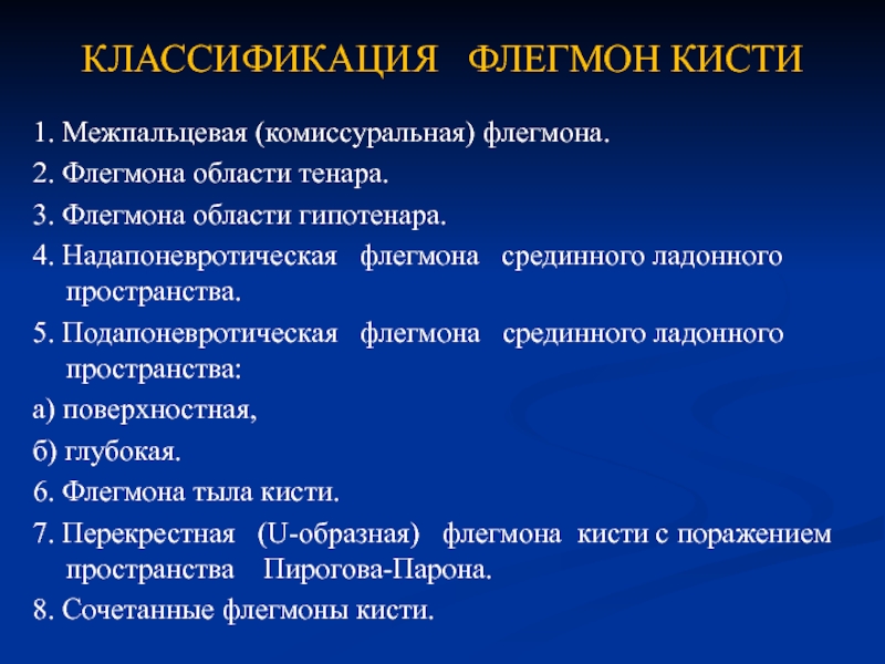 Слайд 21КЛАССИФИКАЦИЯ ФЛЕГМОН КИСТИ