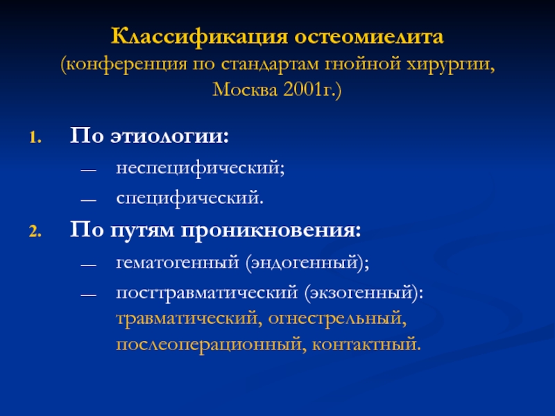 (osteomyelitis) - неспецифическое гнойное заболевание, представляющее собой воспаление костного
