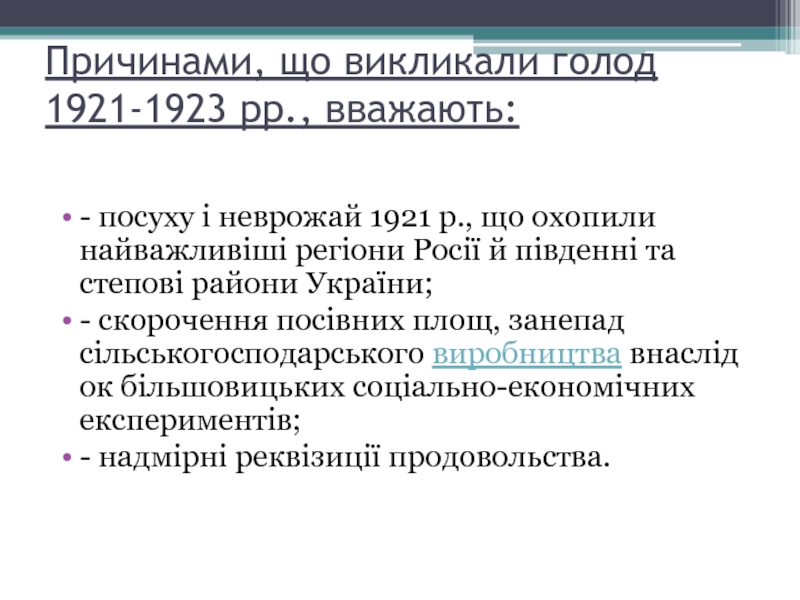Слайд 3Причинами, що викликали голод 1921-1923 pp., вважають: