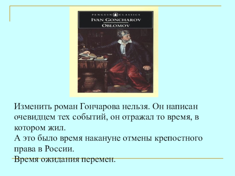 Слайд 14Изменить роман Гончарова нельзя. Он написан