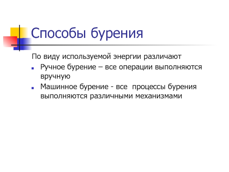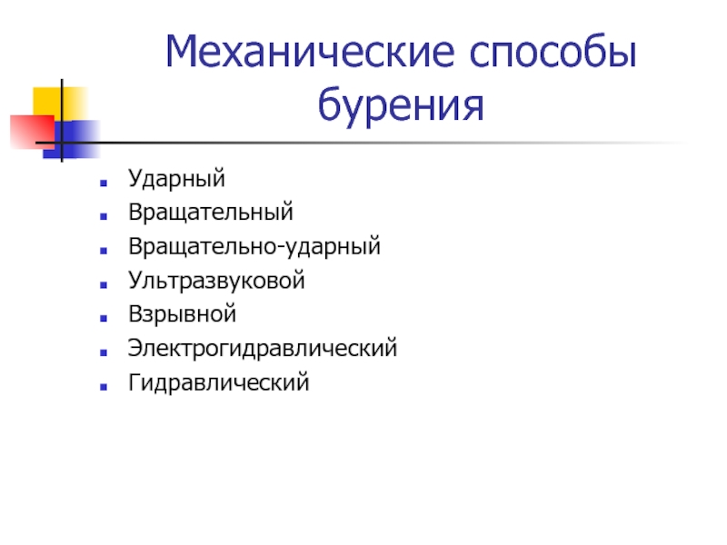 Твёрдым породоразрушающим инструментом - ударное, вращательное, ударно-вращательное,