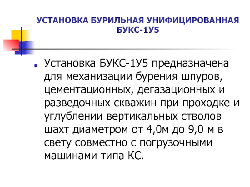 Установка БУКС-1У5 предназначена для механизации бурения шпуров, цементационных,