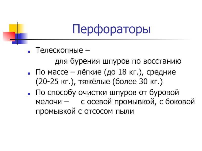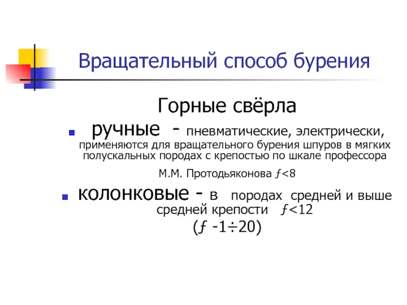 ручные и колонковые (для бурения горизонтальных, наклонных и нисходящих шпуров)