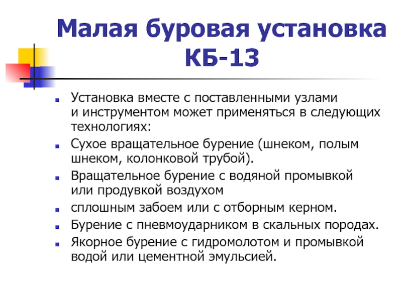 Малая буровая установка КБ-13 сконструирована для выработки вертикальных