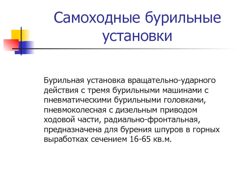 частью. Предназначена для бурения шпуров по забою при проведении горизонтальных и наклонных до 12° горных выработок сечением, преимущественно от 8 до 18 м2 в свету, проводимых по породам крепостью до f = 20 по шкале проф. Протодъяконова и по смешанному забою