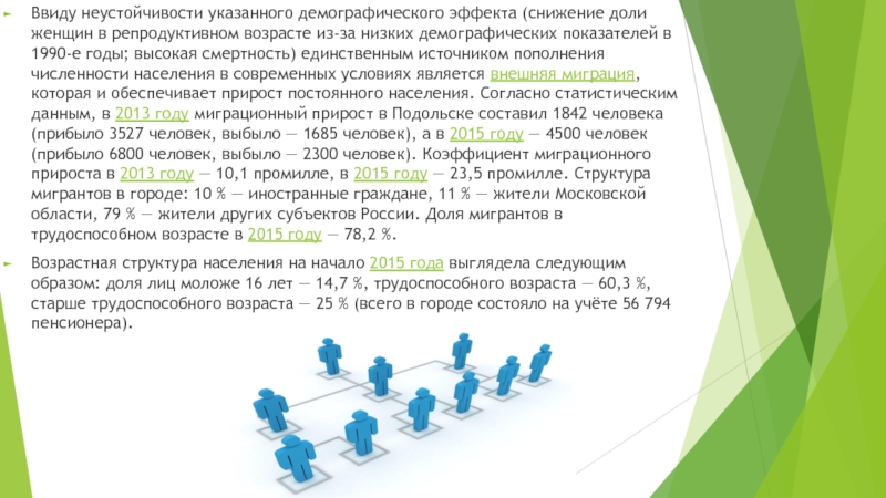 Слайд 10Ввиду неустойчивости указанного демографического эффекта (снижение доли женщин в репродуктивном