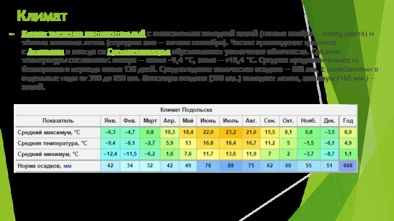 Климат умеренно континентальный с относительно холодной зимой (начало ноября — конец марта) и