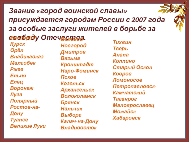 Звание «город-герой» стали получать