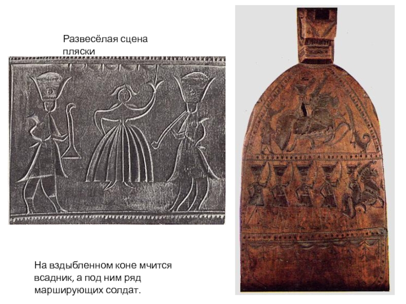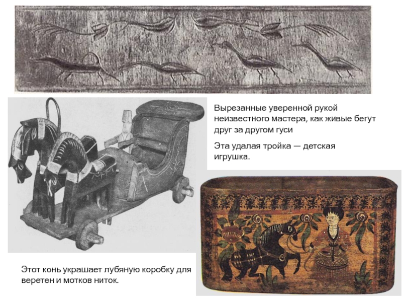 Лихо гарцующего всадника и птицу мастер поместил на головке прядильного донца — подставке для гребня.