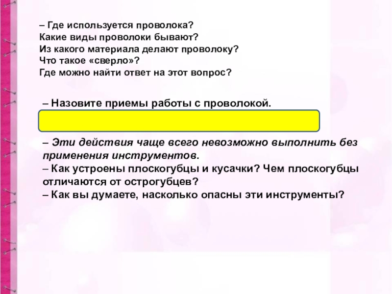– Эти действия чаще всего невозможно выполнить без применения инструментов.