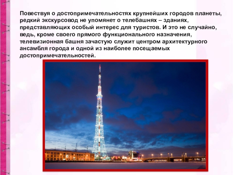 о телебашнях – зданиях, представляющих особый интерес для туристов. И